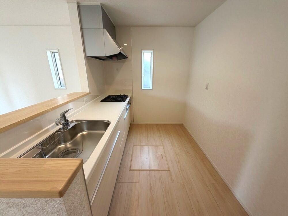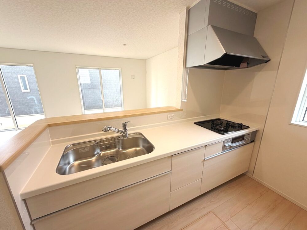 対面式キッチンからはリビング全体が見渡せるので、お子様の様子を見ながらお料理ができるのも嬉しいポイントですね。