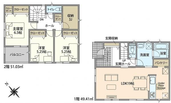 1階のキッチン横にはパントリーとアンダーフロアストレージ(床下収納スペース)を完備しています。