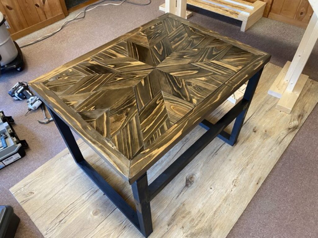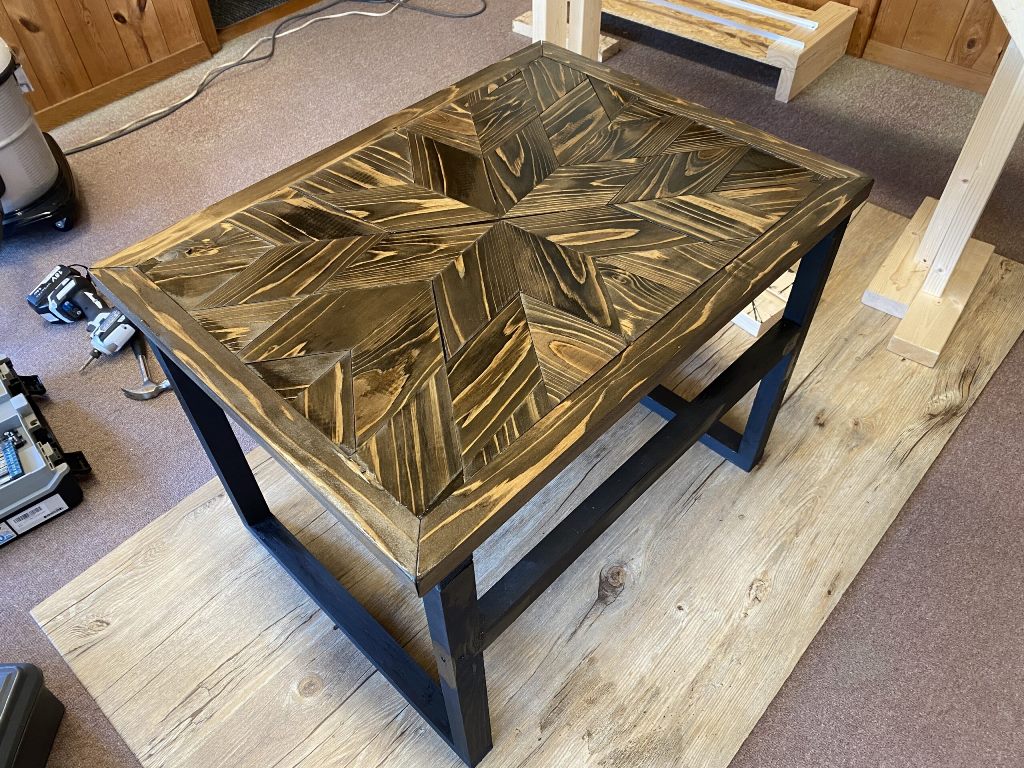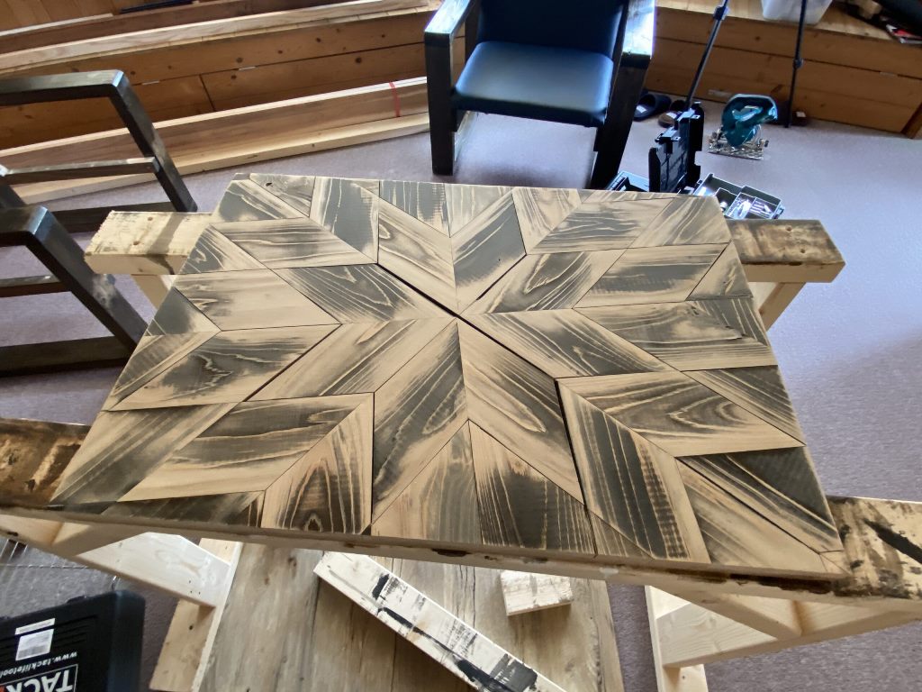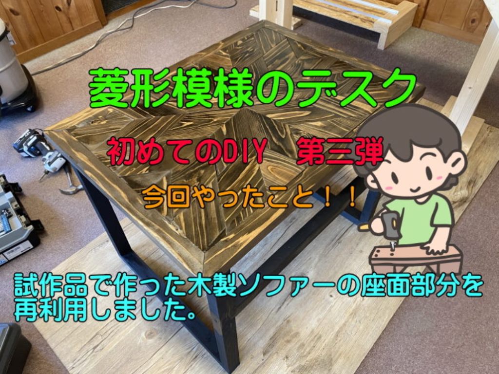 by 佐藤 栄亮 2021年3月23日 前回の木製ソファーの試作品の座面部分が杉板では弱くて、使い物にならなかった為、解体を行い、その杉板を再利用してアーガイル柄にしたく、全て菱形に切って貼り付けて行きました。 作業的には時間がかかりましたが、すべて余の材料での作成でしたので、ほぼ費用もかからずにできました。