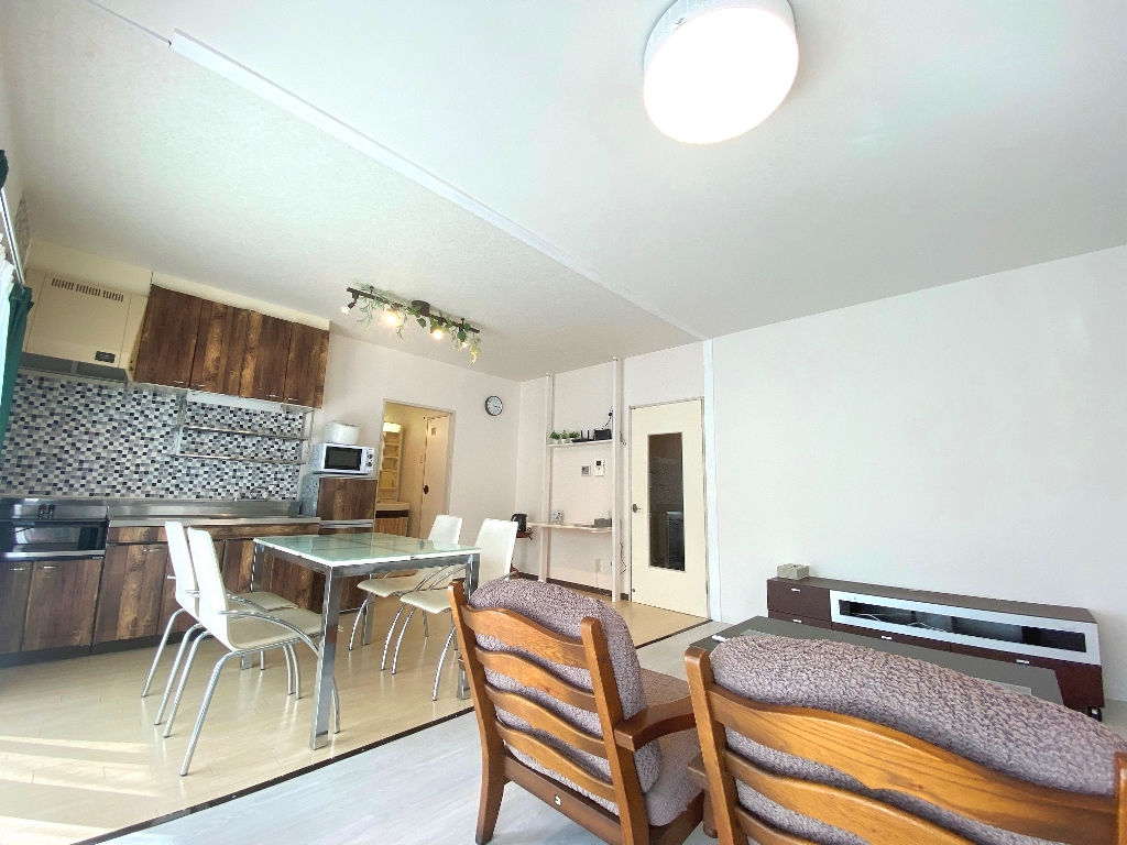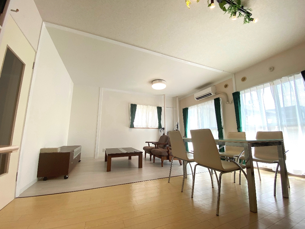前回は、和室部分の壁を解体しダイニングキッチンとつなげてLDKへ改装を行いました。押し入れ部分をクローゼットとしたのですが、今回は押し入れ部分も全て取り壊してリビング部分を広くとりました。マンスリーという性質上、収納よりも居室スペースを広くとることを優先いたします。