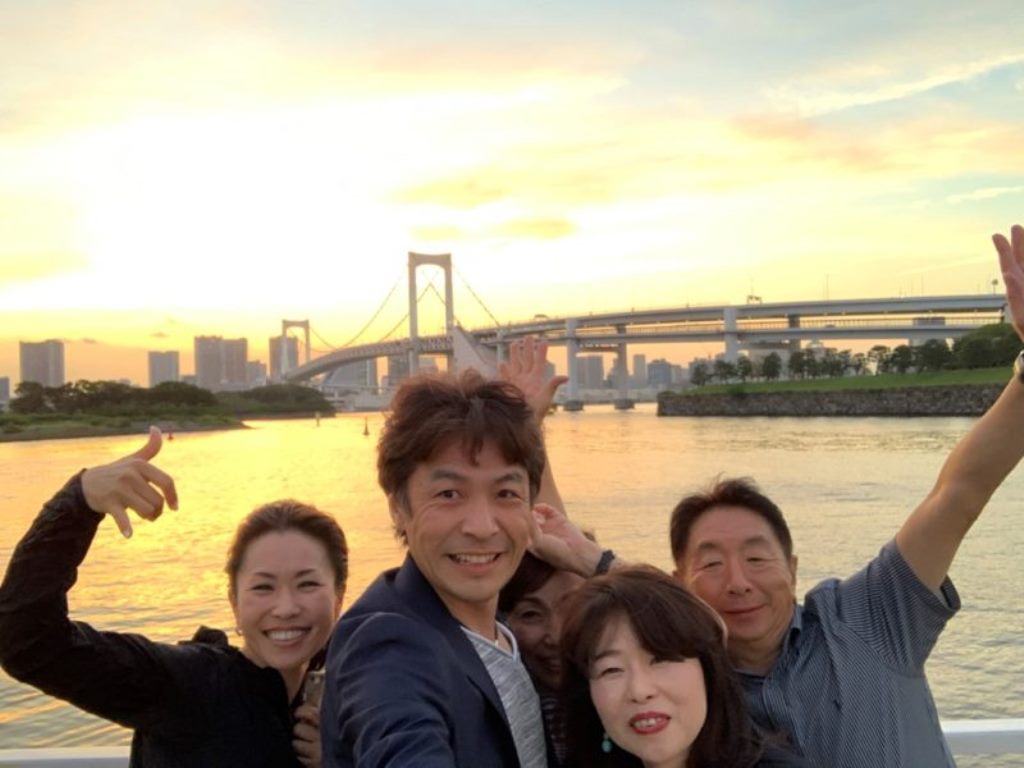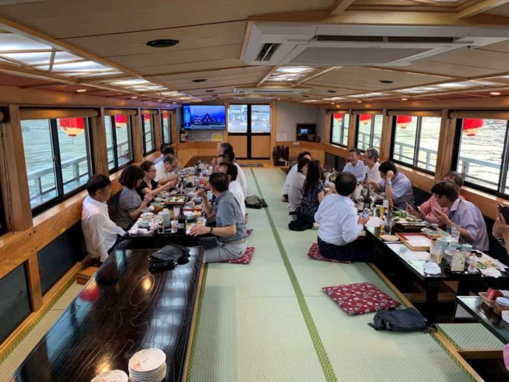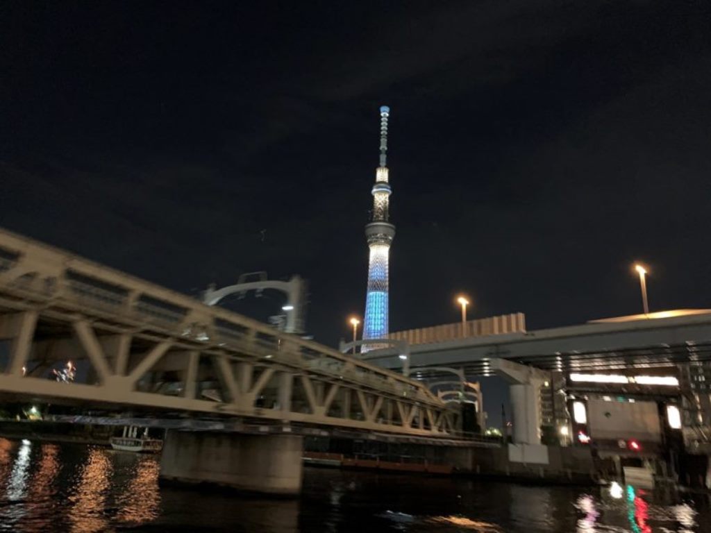 夕食は、屋形船~。初めて乗りました。イメージは暑いか寒いかで、トイレは垂れ流し、飯は微妙~。な~んてイメージしていましたが、ぜーーーんぜん違い、めちゃくちゃきれいで、エアコン完備、トイレなんてウォシュレット付きのきれいなトイレ。そして、食事も値段から言ったら美味しく、天ぷらもその場で揚げているようで、美味しくいただくことができました。季節も最高で、船の上のデキッキからは、レインボーブリッジに東京スカイツリーまで見れて想定外の良い夕食となりました。
