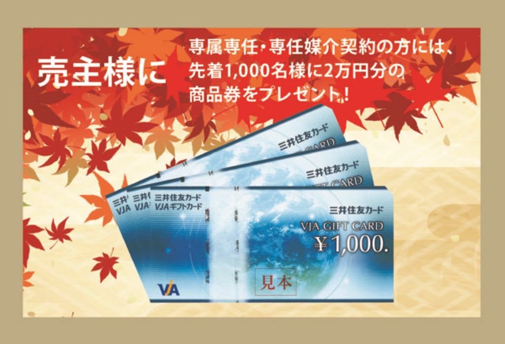 フェア期間内に専属専任・専任媒介契約の方には先着で1,000名様に20,000円分の商品券をプレゼントいたします。