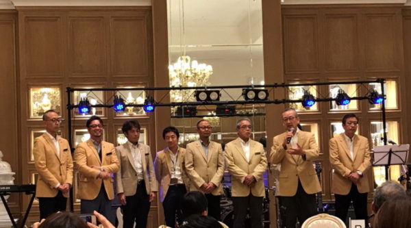 歴代会長とともに壇上へ上がらせていただきました。まだ自分も30代前半で会長を受けさせていただき、このメンバーでは、まだ若い方ではありますが(笑)すでに中堅の年齢には達し、今後の会社のビジョンも15年前とは大きく変わっていることも肌で感じるひと時でした。
