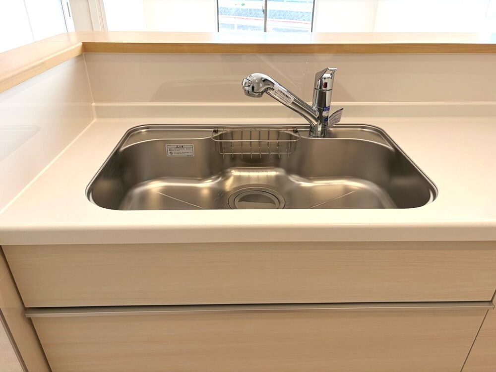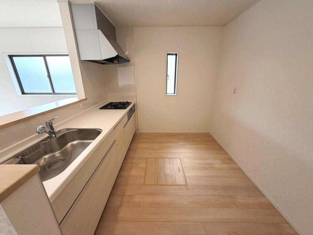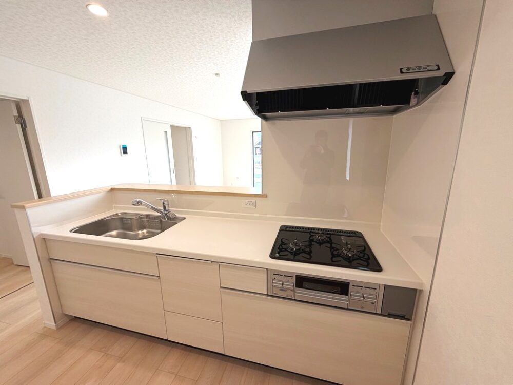 対面式キッチンからはリビング全体が見渡せるので、家族の会話を楽しみながらお料理ができますね。