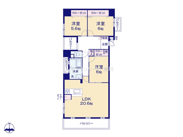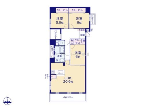 | 間取内容 | LDK20.6畳 洋室6畳 洋室6畳 洋室5.6畳 | ||