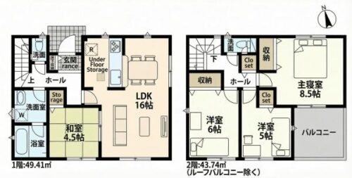 間取内容 LDK16畳 1階   和室4.5畳 1階   洋室8.5畳 2階   洋室6畳 2階   洋室5畳 2階