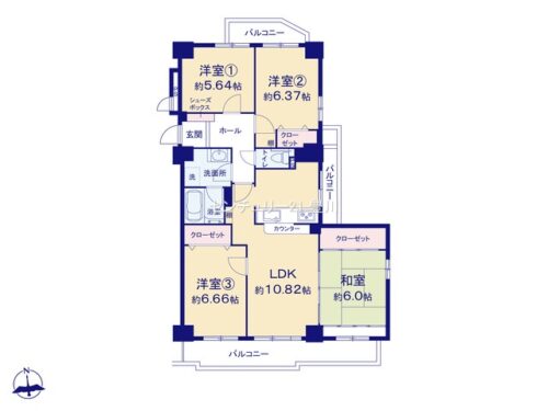 | 間取内容 | LDK10.82畳 和室6畳 洋室6.66畳 洋室6.37畳 洋室5.64畳 | ||