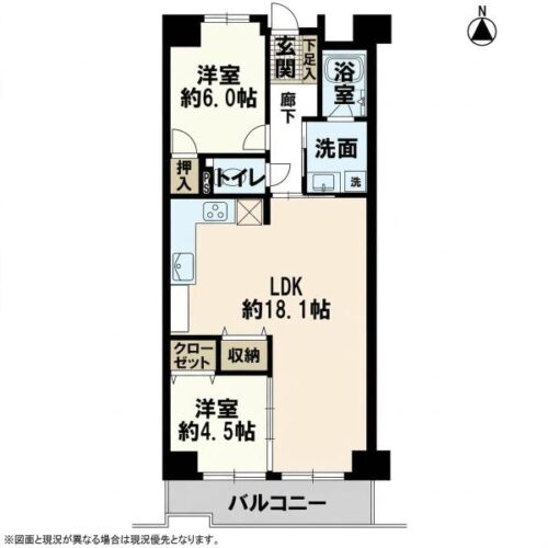 | 間取内容 | LDK18.1畳 洋室6畳 洋室4.5畳 | ||