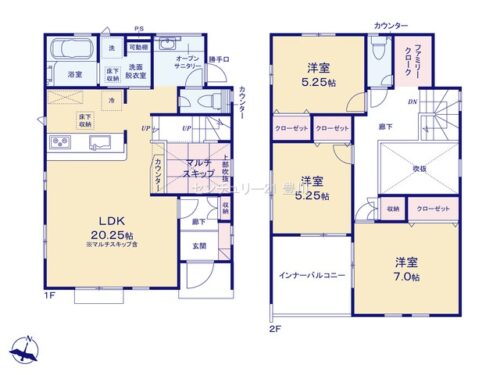 間取内容 LDK20.25畳 1階   洋室7畳 2階   洋室5.25畳 2階   洋室5.25畳 2階