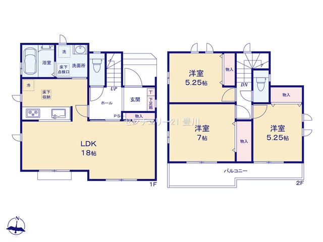 間取内容 LDK18畳 1階   洋室7畳 2階   洋室5.25畳 2階   洋室5.25畳 2階