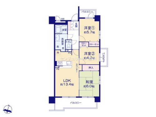 | 間取内容 | LDK13.4畳 和室6畳 洋室5.7畳 洋室4.2畳 | ||