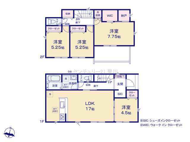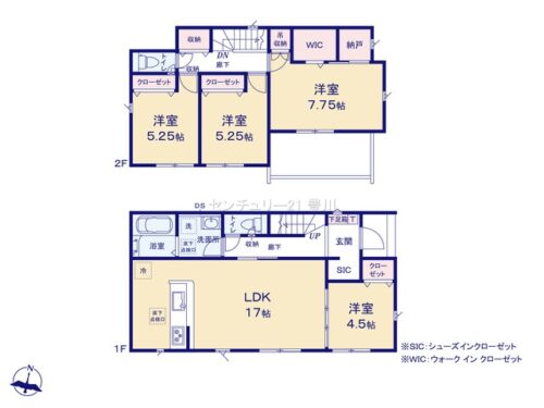 | 間取内容 | LDK17畳 1階 洋室4.5畳 1階 洋室7.75畳 2階 洋室5.25畳 2階 洋室5.25畳 2階 | ||