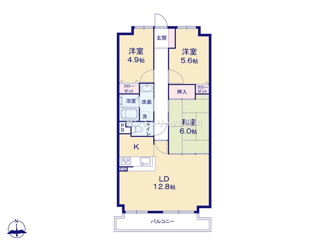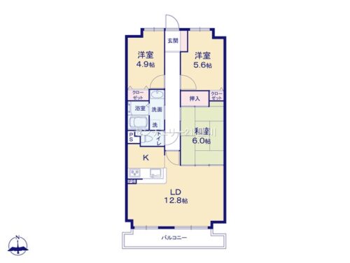 | 間取内容 | LD12.8畳 和室6畳 洋室5.6畳 洋室4.9畳 | ||