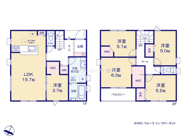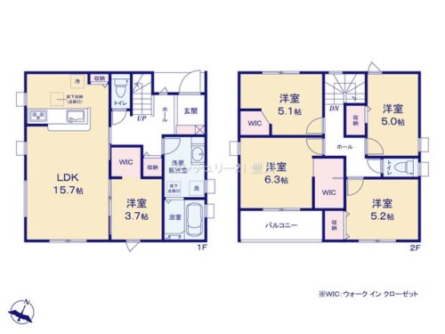 間取内容 LDK15.7畳 1階   洋室3.7畳 1階   洋室6.3畳 2階   洋室5.2畳 2階   洋室5.1畳 2階   洋室5.0畳 2階