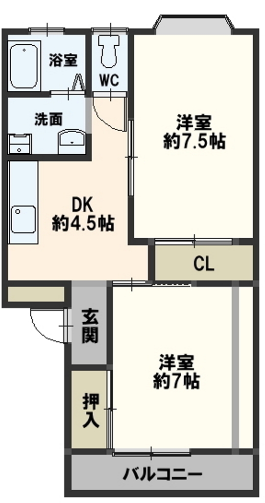 | 間取内容 | 洋室7畳 洋室7.5畳 DK4.5畳 | ||