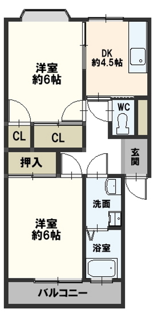 | 間取内容 | 洋室6畳 洋室6畳 DK4.5畳 | ||