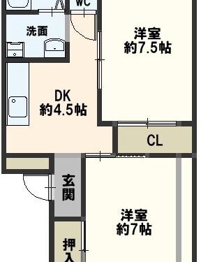 | 間取内容 | 洋室7畳 洋室7.5畳 DK4.5畳 | ||