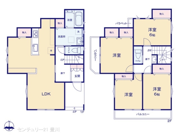 | 間取内容 | LDK18畳 1階 洋室6畳 2階 洋室6畳 2階 洋室6畳 2階 洋室5畳 2階 | ||