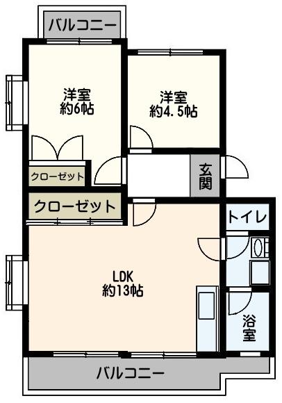 | 間取内容 | LDK13畳 洋室6畳 洋室4.5畳 | ||