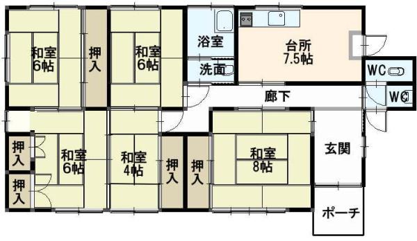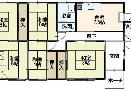 | 間取内容 | DK7.5畳 和室8畳 和室6畳 和室6畳 和室6畳 和室4畳 | ||