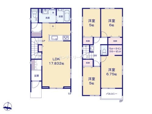 | 間取内容 | LDK17.832畳 1階 洋室6.75畳 2階 洋室6畳 2階 洋室5畳 2階 洋室5畳 2階 | ||