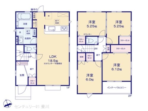 | 間取内容 | LDK18.5畳 1階 洋室6.12畳 2階 洋室6.0畳 2階 洋室5.25畳 2階 洋室5.25畳 2階 | ||