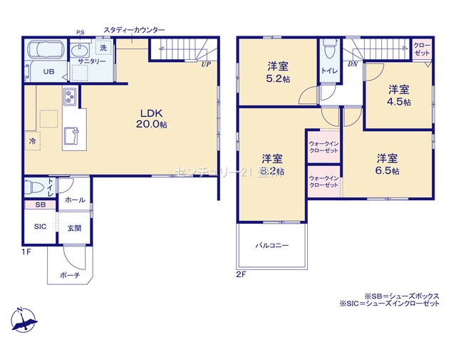 | 間取内容 | LDK20畳 1階 洋室8.2畳 2階 洋室6.5畳 2階 洋室5.2畳 2階 洋室4.5畳 2階 | ||