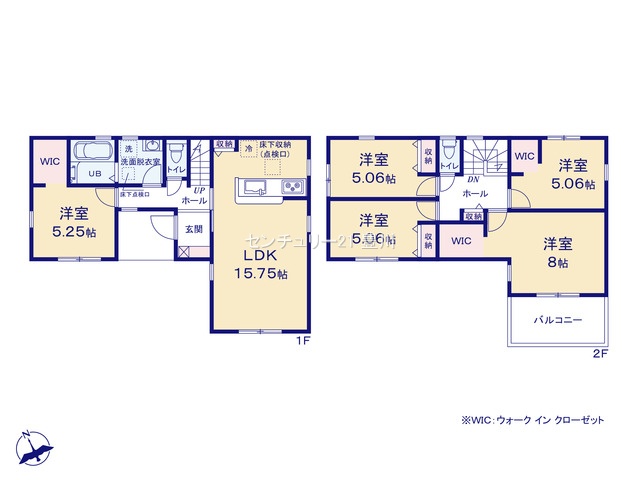 間取内容 LDK15.75畳 1階   洋室5.25畳 1階   洋室8畳 2階   洋室5.06畳 2階   洋室5.06畳 2階   洋室5.06畳 2階