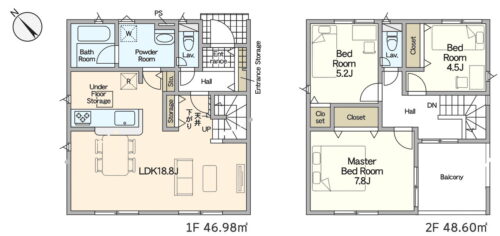 | 間取内容 | LDK18.8畳 1階 洋室7.8畳 2階 洋室5.2畳 2階 洋室4.5畳 2階 | ||
