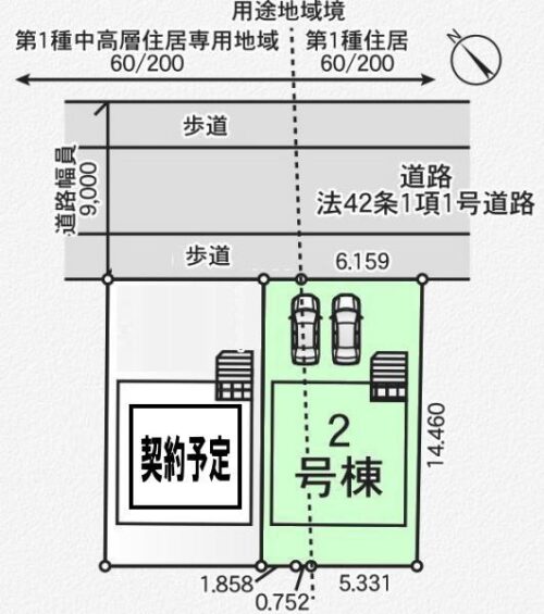 | 地目 | 宅地 | 用途地域 | 第一種住居 |