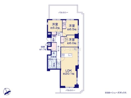 | 間取内容 | LDK20.1畳 洋室6.5畳 洋室6畳 洋室5.2畳 | ||