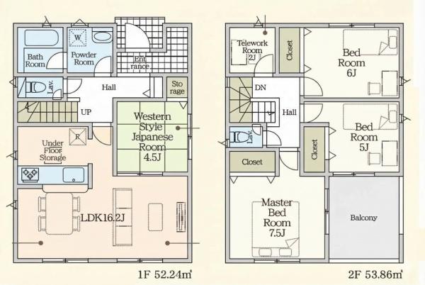 間取内容 LDK16.2畳 1階   和室4.5畳 1階   洋室7.5畳 2階   洋室6畳 2階   洋室5畳 2階   S2畳 2階