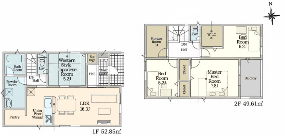 | 間取内容 | LDK16.3畳 1階 和室5.2畳 1階 洋室7.8畳 2階 洋室6.2畳 2階 洋室5.2畳 2階 S3畳 2階 | ||
