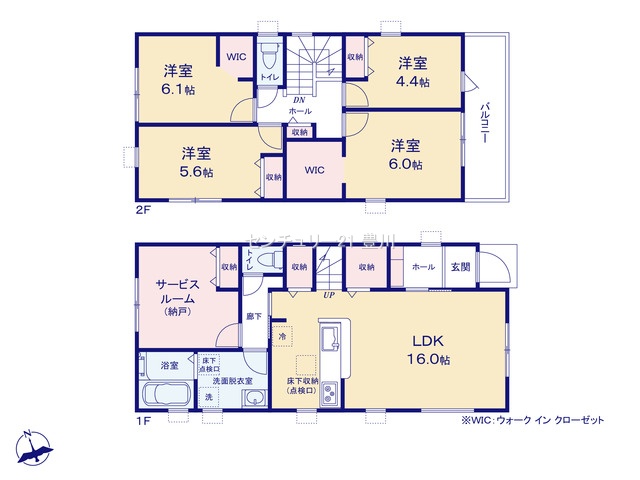 間取内容 LDK16畳 16階   S1階   洋室6.1畳 2階   洋室5畳 2階   洋室4.4畳 2階   洋室