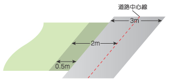 2項道路を含めて4メートルの範囲内には、 建築物 や塀などを造ることを禁止し、4メートルの空間を確保しようという趣旨である。
