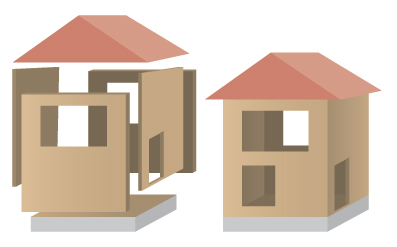 by 佐藤 栄亮 2019年3月18日 読み方:つーばいふぉーこうほう 北米で生まれ発達した工法で、日本では「枠組壁工法」という呼び方が正式名称となっている。 建物 の 躯体 を構成する部材のうち、2インチ×4インチの断面の部材を多用することから、2×4(ツーバイフォー)工法の呼び方が一般化している。 主として住宅用に用いられている。 この工法は規格化された構造用製材でつくった枠組みに、構造用合板などの面材を打ち付けたパネルで床、壁、屋根を箱状に構成する構造である。 これにより、壁そのものが垂直方向と水平方向の強度を持つことができる。
