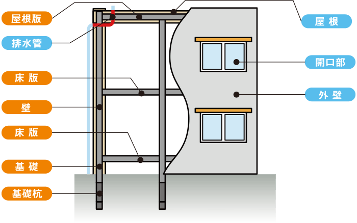 主な調査項目は以下のとおり、調査は目視・計測・書類等により行います。