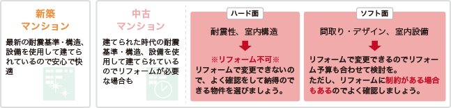 また、マンションは管理規約や工事申請のルールがあるため、「できる工事/できない工事」も事前確認が重要です。