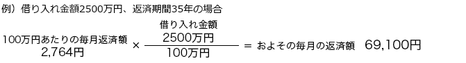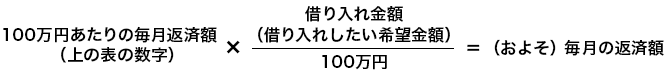 | 金利2.5%:100万円あたり月額 | 約4,486円 | 約3,951円 | 約3,575円 |