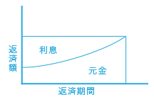 毎月の返済額(元金+利息)が一定になる返済方式です。家計管理がしやすい反面、返済初期は利息の割合が大きく、元金の減りはゆるやかになりやすい特徴があります。